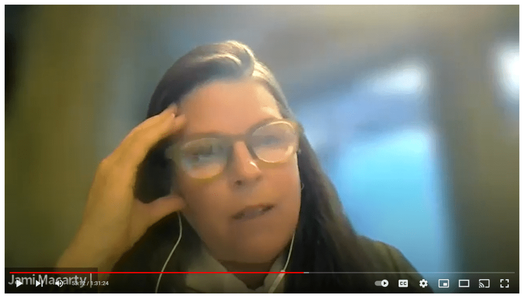 Above is a screenshot from wee three-minute finalist video—the background cover photo of The Whole Catastrophe by Dennis A. Boyd, features thousands of sandhill cranes at Whitewater Draw Wildlife Area—shown at H of the Night.