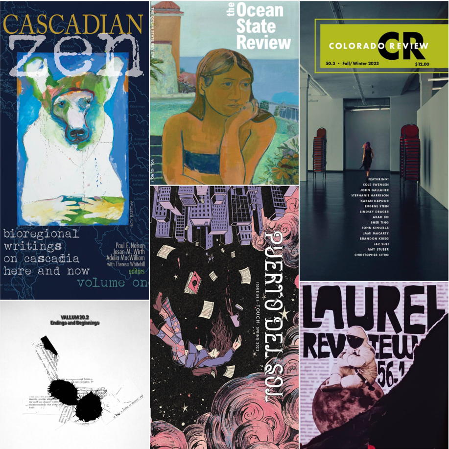 + I bow to the editors and existence of the anthologies and literary magazines Cascadia Zen, Vallum, Colorado Review, Laurel Review, Puerto del Sol, The Ocean State Review, where I gratefully find support and community.