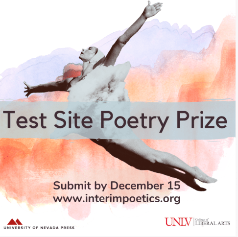 The Test Site Poetry Series is the collaborative book-publishing project of Interim: A Journal of Poetry and Poetics and the University of Nevada Press. Interim, established in 1944 by the late Wilber Stevens, is housed in the English Department at the University of Nevada, Las Vegas and is one of the longest-running “little” literary magazines in the United States. Interim editors and poets Claudia Keelan and Andrew S. Nicholson serve as Test Site Poetry Series editors. The Test Site Poetry Prize-winning book is chosen by Claudia Keelan and an advisory board, which includes poets Sherwin Bitsui, Donald Revell, Sasha Steensen, and Ronaldo V. Wilson.