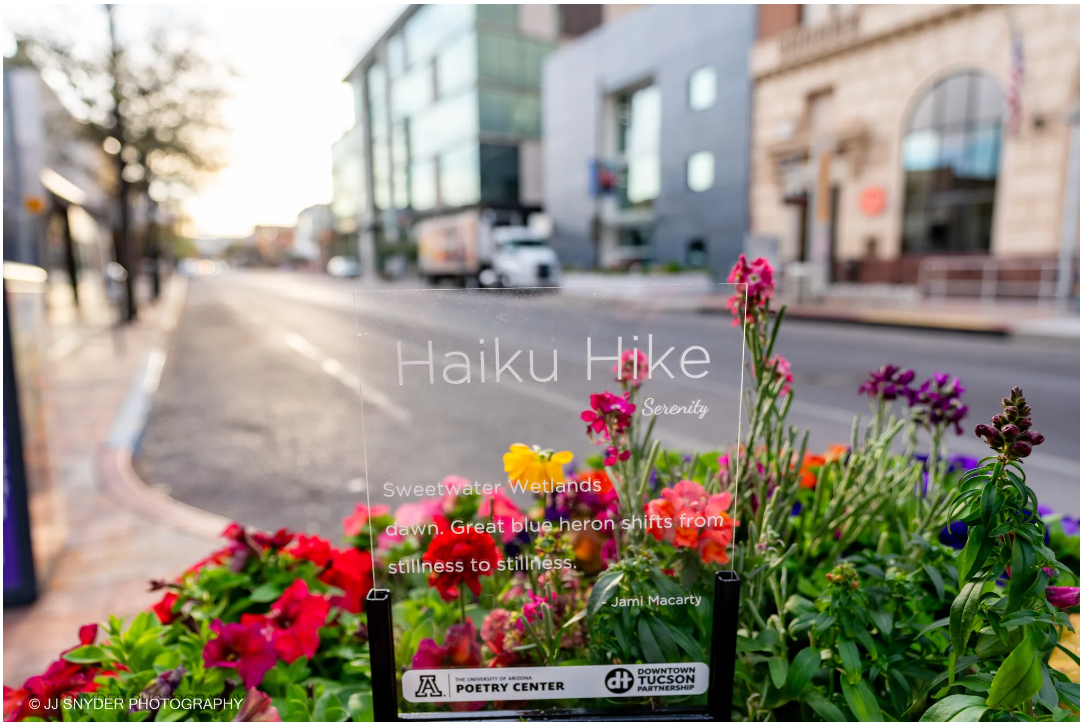 Preview each winning haiku in the 2024 Haiku Hike Literary Competition with accompanying images taken for the Downtown Tucson Partnership (DTP) by JJ Snyder Photography.