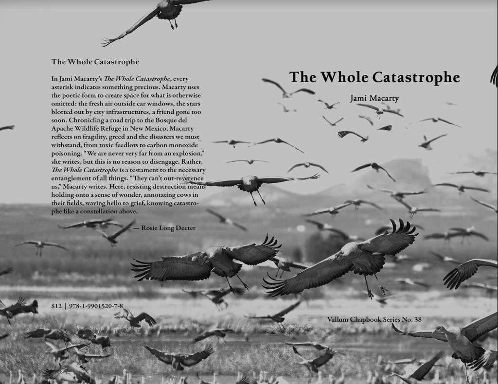 + Thank you bows (continuous!) to Vallum Chapbook Series and Eleni Zisimatos, Editor, and Leigh Kotsilidis, Designer, for making my chapbook The Whole Catastrophe (2024) with me.