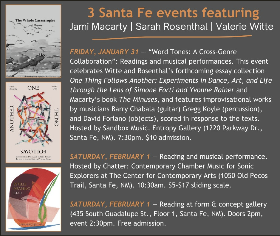 Sarah, Valerie, and I have planned more gathering places for ourselves, our books, and others in Santa Fe later this month and early February. Join us if you can!