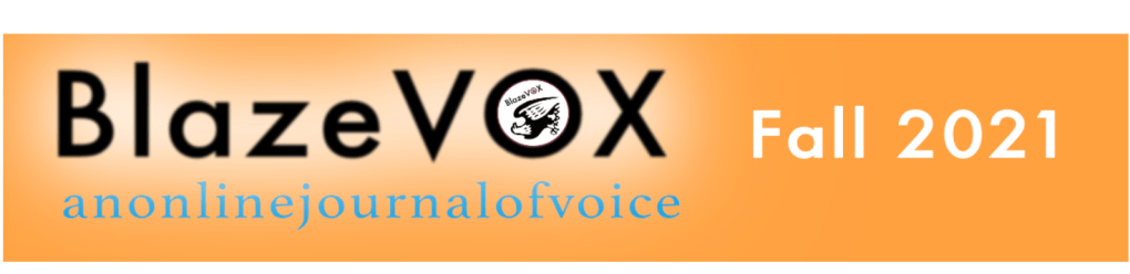 Welcome to the Fall 2021 issue of BlazeVOX where four of my newer poems appear! In his introduction, editor Geoffrey Gatza writes: “In this issue we seek to avoid answers but rather to ask questions. With a subtle minimalistic approach, this issue of BlazeVOX focuses on the idea of “public space” and more specifically on spaces where anyone can do anything at any given moment: the non-private space, the non-privately owned space, space that is economically uninteresting. The works collected feature coincidental, accidental, and unexpected connections, which make it possible to revise literary history and, even, better, to complement it.” Later in the introduction, Gatza writes: “These pieces demonstrate how life extends beyond its own subjective limits and often tells a story about the effects of global cultural interaction over the latter half of the twentieth century. It challenges the binaries we continually reconstruct between Self and Other, between our own “cannibal” and “civilized” selves.”