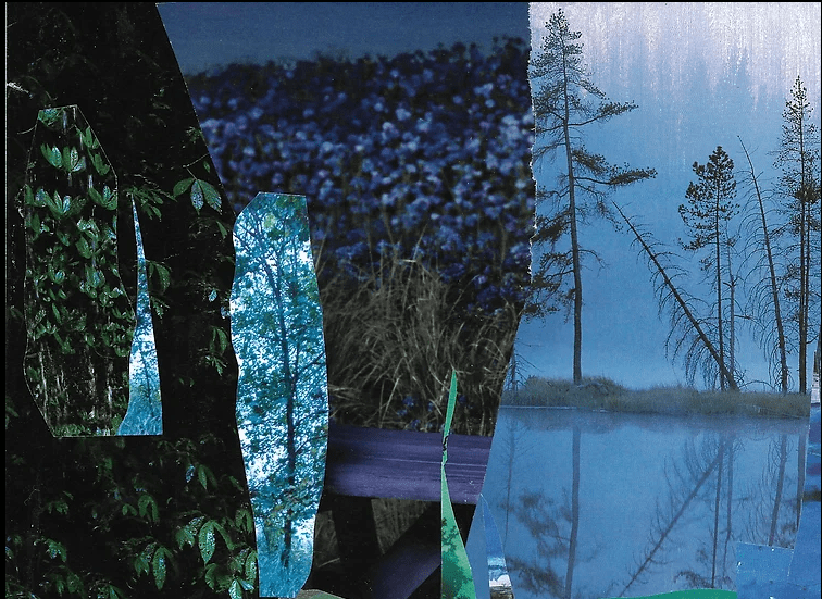 There is more! It is true, I am fortunate that editors recognize my writing by publishing it. Another poem from my manuscript, The Long Now Conditions Permit, To be for infers” appears in the Fall 2022 of Concision Poetry Journal Issue 2.3. Concision is also an online poetry journal. Accompanying my and the other poems is cover art by Deborah Keenan. See an upper portion of the collage, “Another World” above and a lower portion below.
